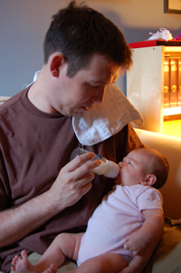 Wednesday, 26 July 2006 Day 28 Daddy fed me for the first time today. The bottle is OK, but I like getting my milk straight from the source. This bottle may take a little getting used to. We want to make Daddy feel a part of everything, so I suppose I'll have to warm up to the idea.