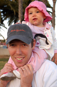Sunday, 17 June 2007 Day 354 Fathers' Day Mommy helped me pick out some presents she thought Daddy would like. We gave him a book, some boxer shorts and some candies. Daddy must have thought I picked them out on my own because he was giving me lots of hugs and kisses. Since it was his first Fathers' Day ever, Mommy and I took Daddy out to brunch at the Paradise Cafe in Santa Barbara. The food was good, and we sat out on the patio. I thought that was great, because I could see lots of little flying creatures and practice saying another of my favorite new words... "Bird!" |