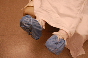 Grandma got to wear cool booties during her surgery.
