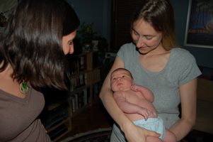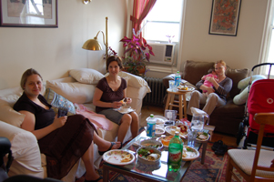 Mommy's friends Sara and Sarah came by this evening. They're her friends from NYU Social Work School. They're really nice and they didn't even mind that I was naked during their visit. (It was a little hot in the apartment). |